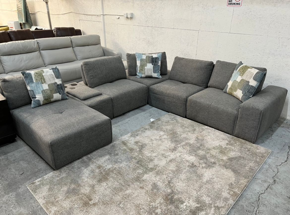 South Brook microfiber 6 pcs with cup holder , manual reclining sectional