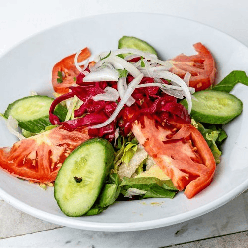 Lettuce, tomatoes, cucumbers, red cabbage, onions, served with house dressing