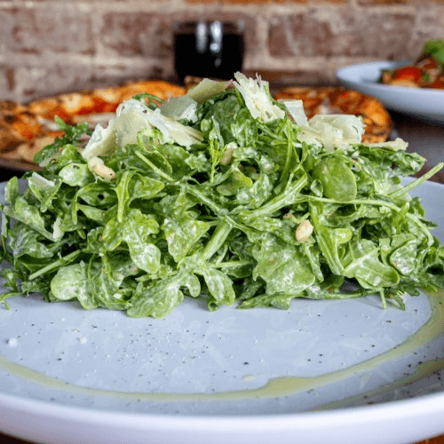 Shaved Parmesan, EVOO, Pine Nuts, Caesar Dressing, Oregano, Black Pepper