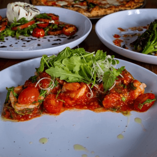 Wood fired tiger shrimp, spiced fra diablo sauce, herb salad.