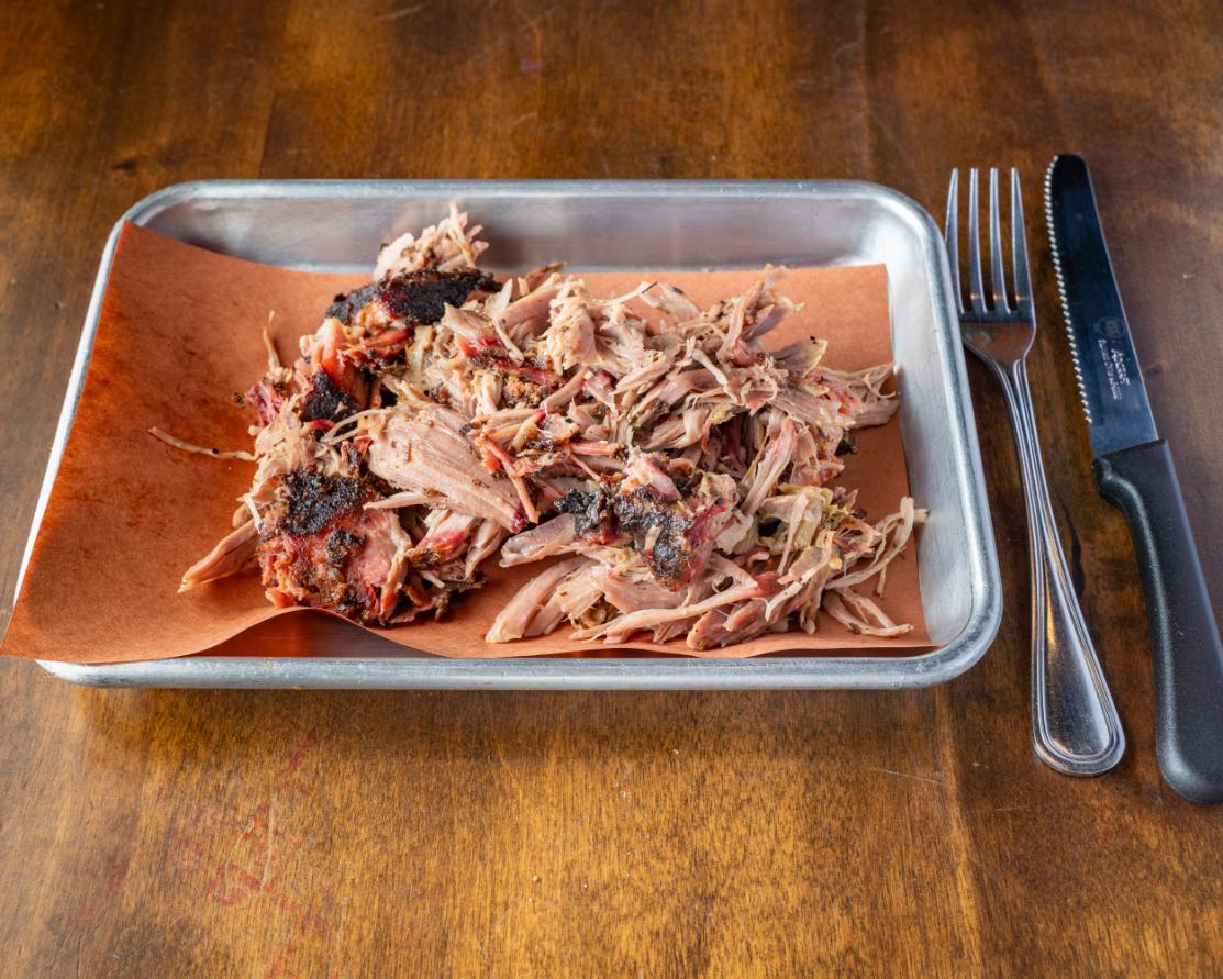 Our Award winning pulled pork is seasoned with our house made PORK RUB slurry, smoked with pecan wood for 12+ hours and pulled when you order it.