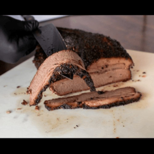 Hand picked, butchered here in house whole packer brisket. Seasoned with our hand crafted spice Rubs and smoked using only Pecan wood low and slow.