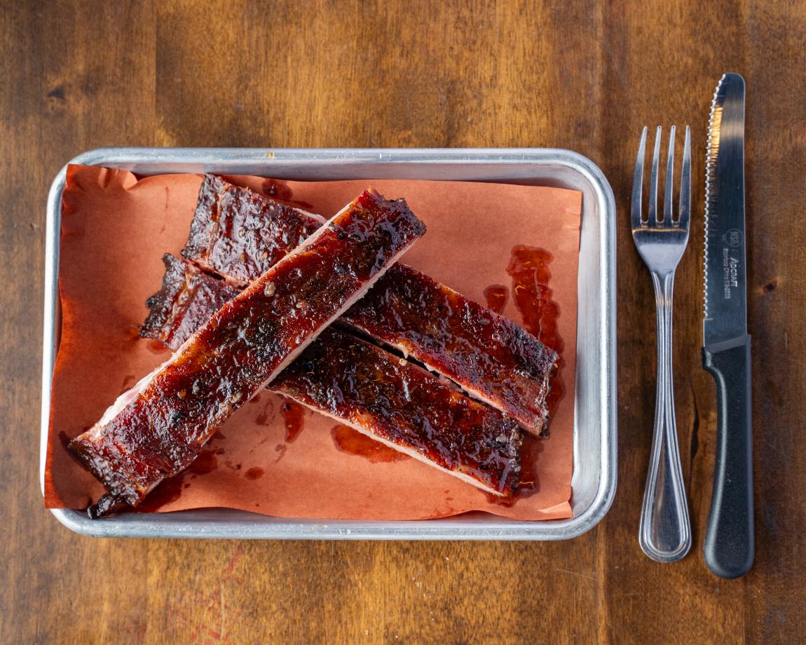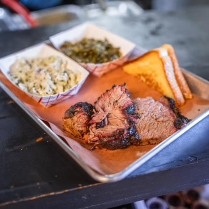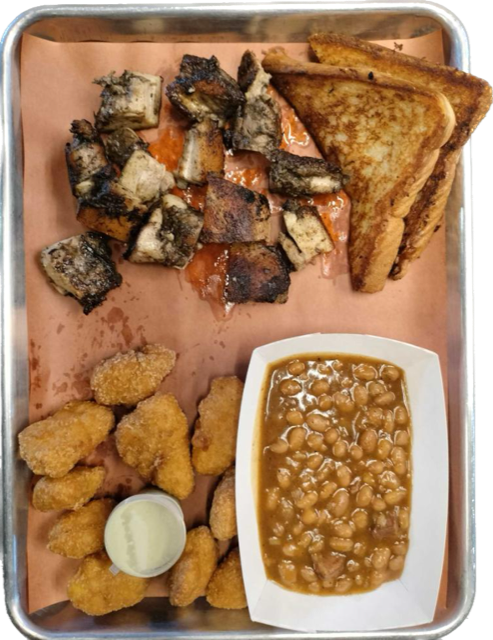 Slow smoked using pecan wood. Served with two sides and garlic toast.