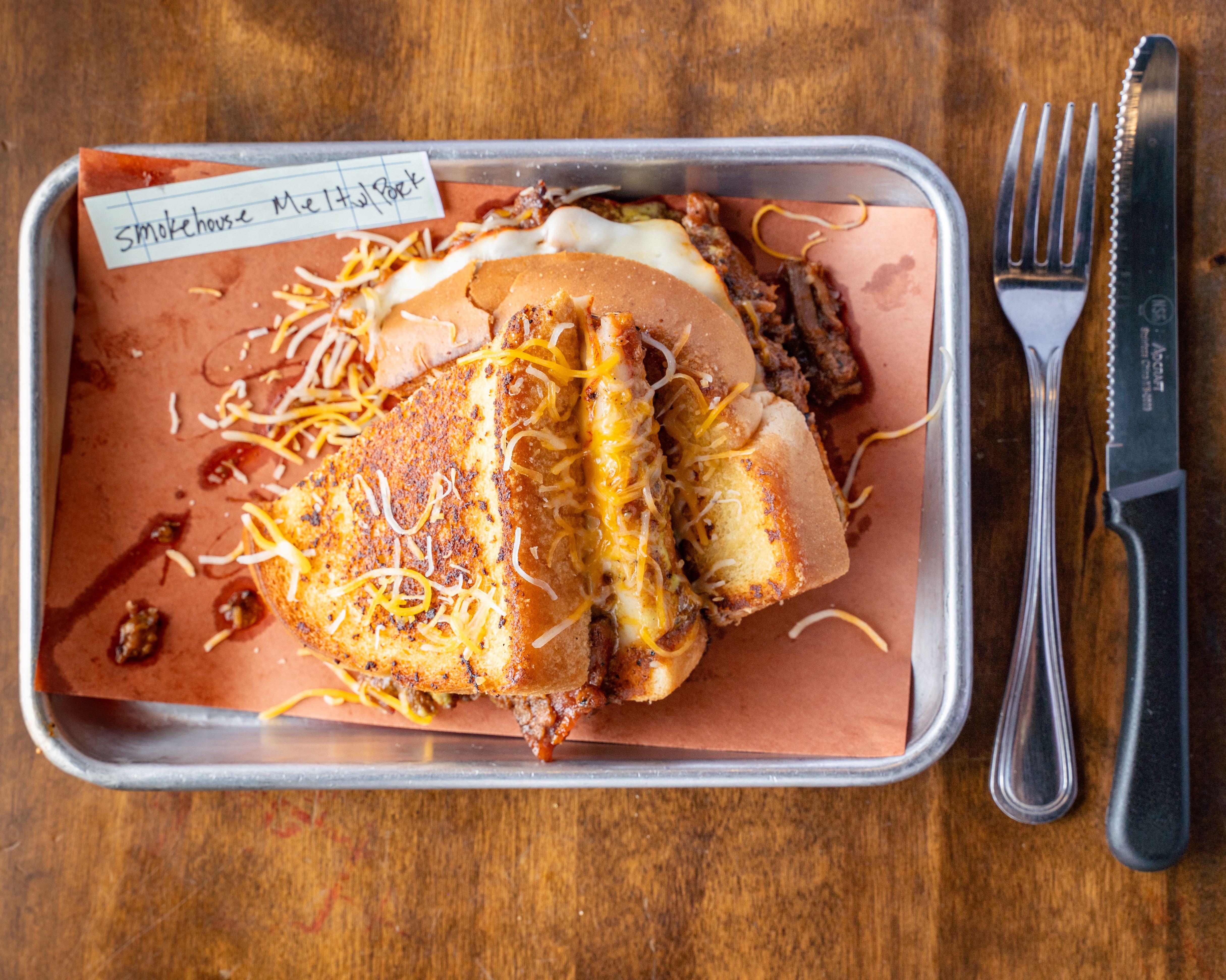 Served on Texas toast, our pulled pork caramelized in our original sweet BBQ sauce with Munster cheese and garlic aioli