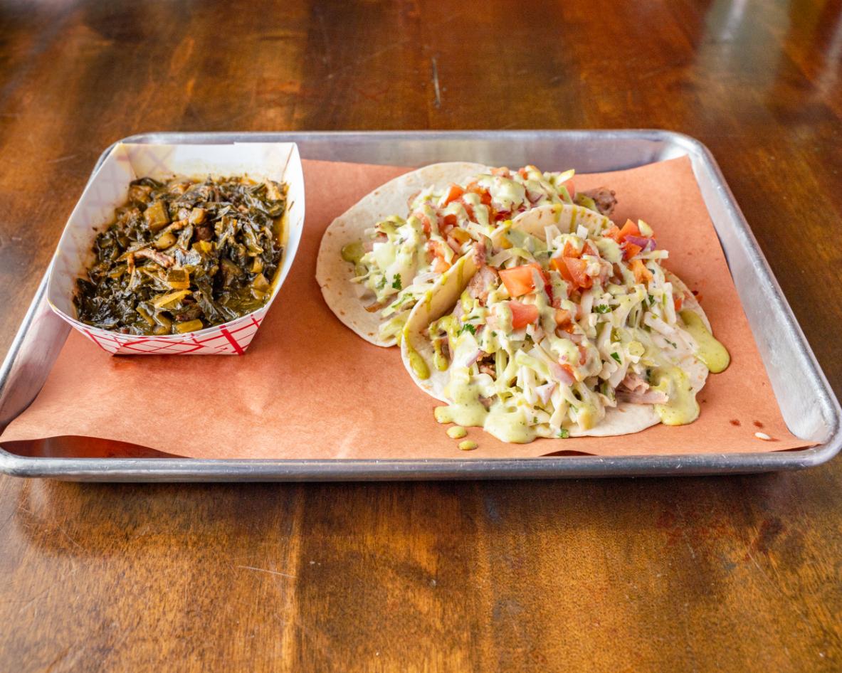 Flour tortillas served with 1 choice of meat, cilantro lime slaw, pico de gallo, and garlic aioli.