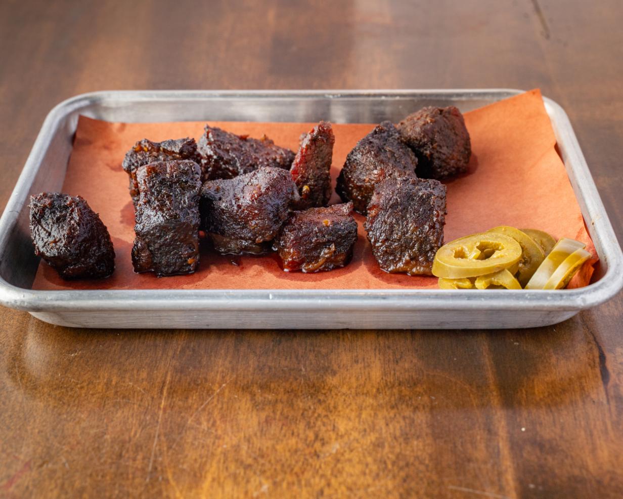 Brisket tips smoked to perfection, glazed with our honey butter sweet sauce. Served with our in house pickled chilis.