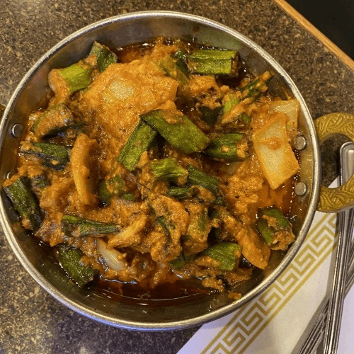 Goat pieces smoothed in a creamy spinach Saag (gravy), fresh herbs & spices.
