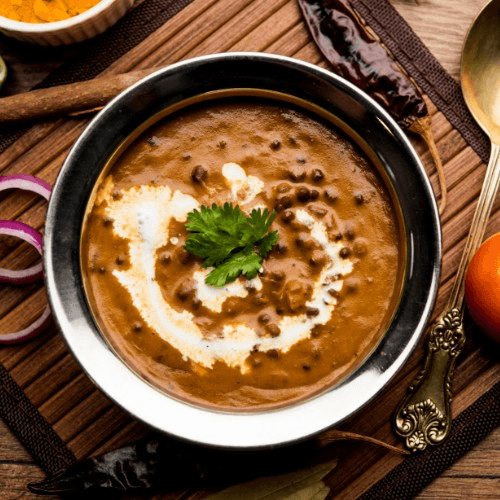 Slow-cooked black lentils and kidney beans with spices, butter, and cream