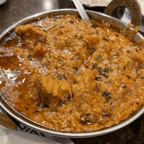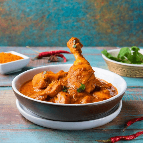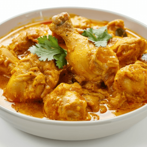 Tender chicken cooked in a rich tangy aromatic masala sauce with traditional spices.
