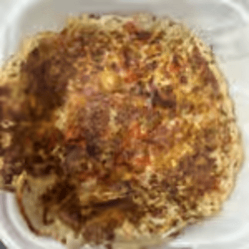 Flaky shredded/beaten-up flatbreads that is cooked in a spicy curry masala with egg