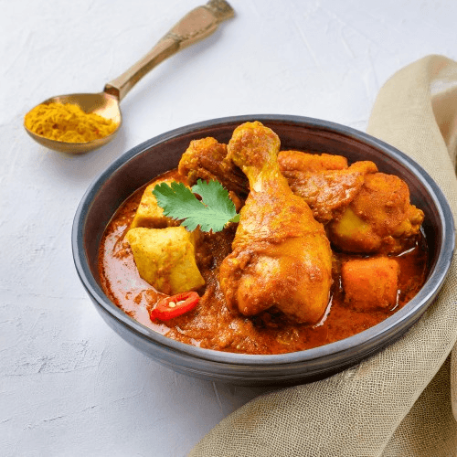 Chicken cooked with potatoes in fiery, tangy, red hot curry sauce. A Goan specialty.