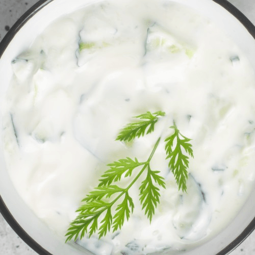 Made with yogurt, cream, nuts, seeds & crushed fried onions VS coconut, seeds, nuts and brown onions