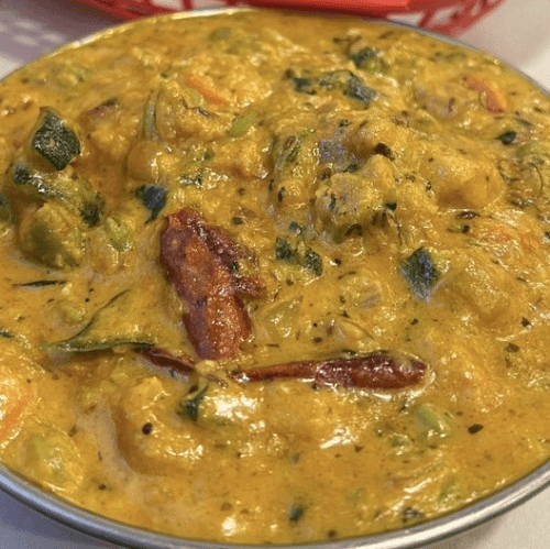 (Fish in Tamarind Gravy) Fish marinated with spicy tamarind paste cooked in Thava with aromatic spices.