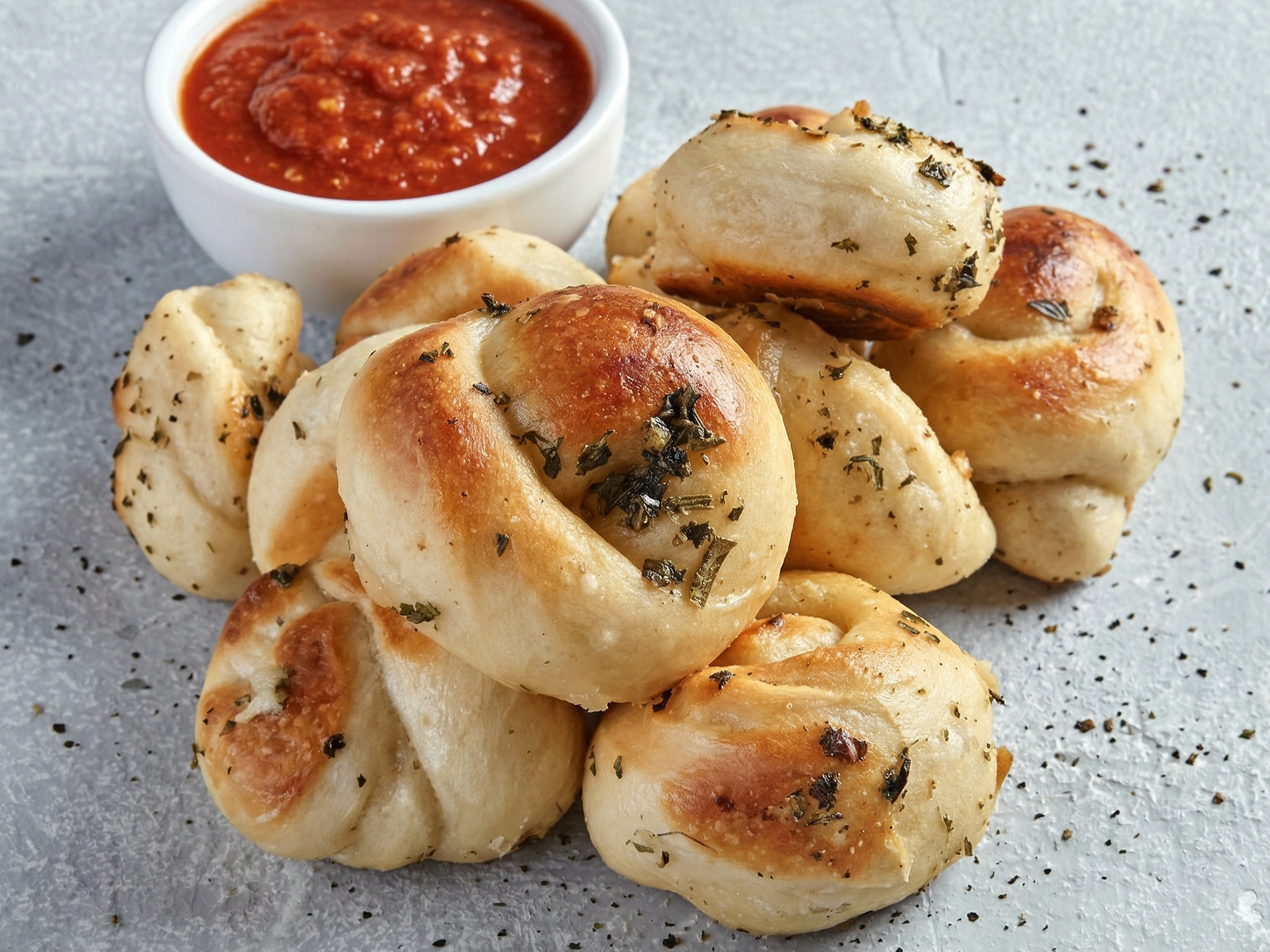 Warm, soft knots coated in rich garlic butter and aromatic herbs.