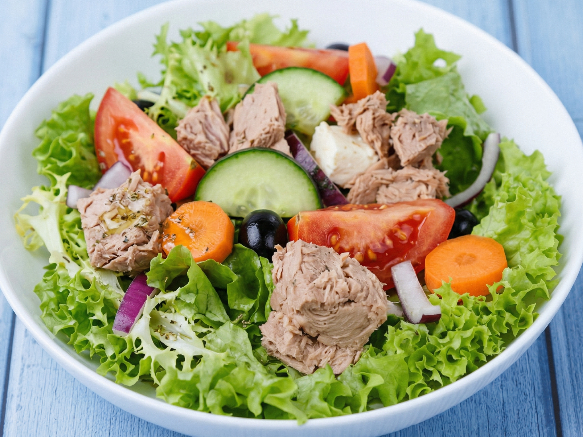 A classic tuna salad featuring fresh greens, tender tuna, and a light, well-balanced dressing.