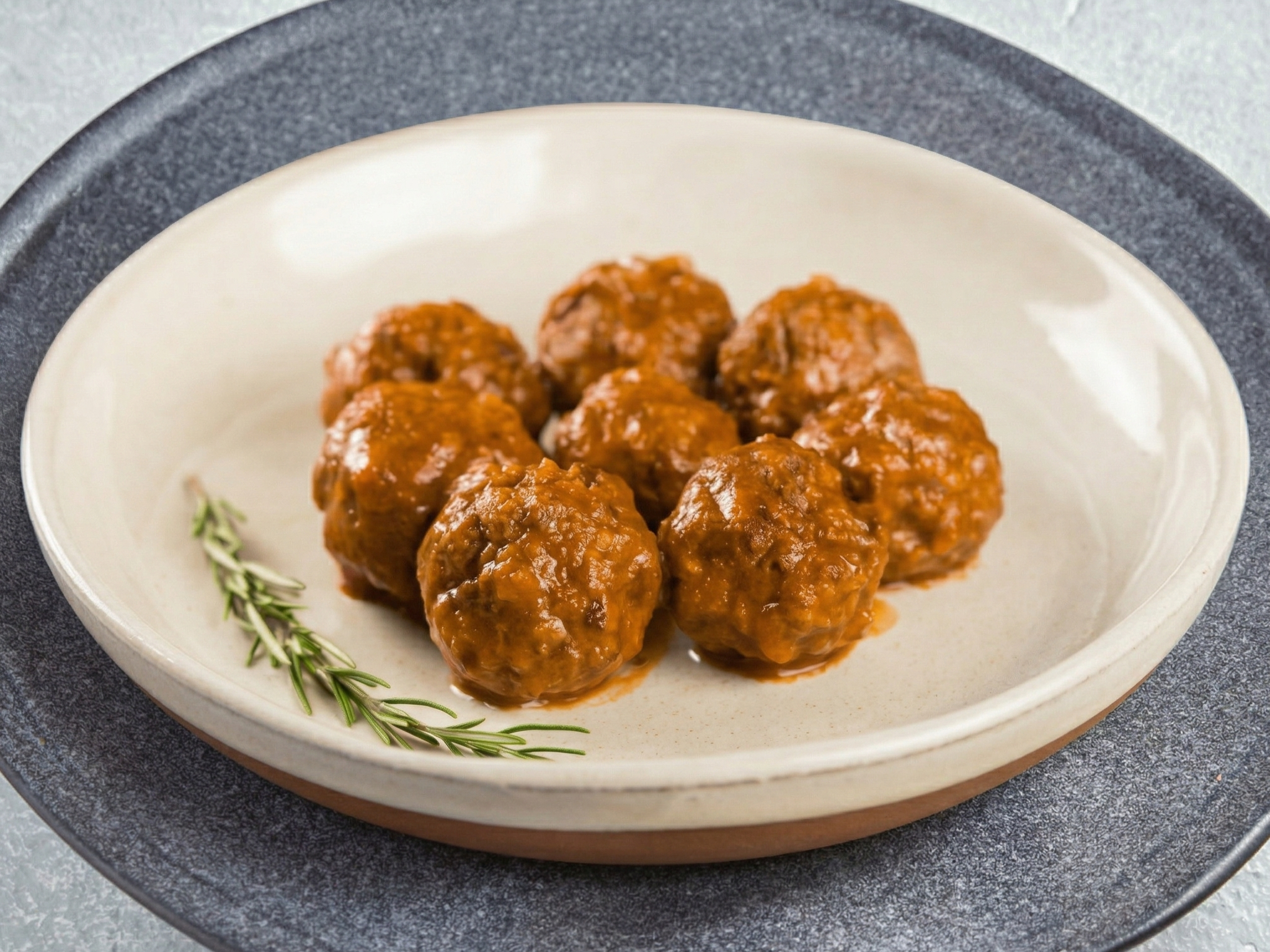 Savory meatballs cooked in a flavorful tomato sauce with bell peppers, onions, and aromatic herbs.