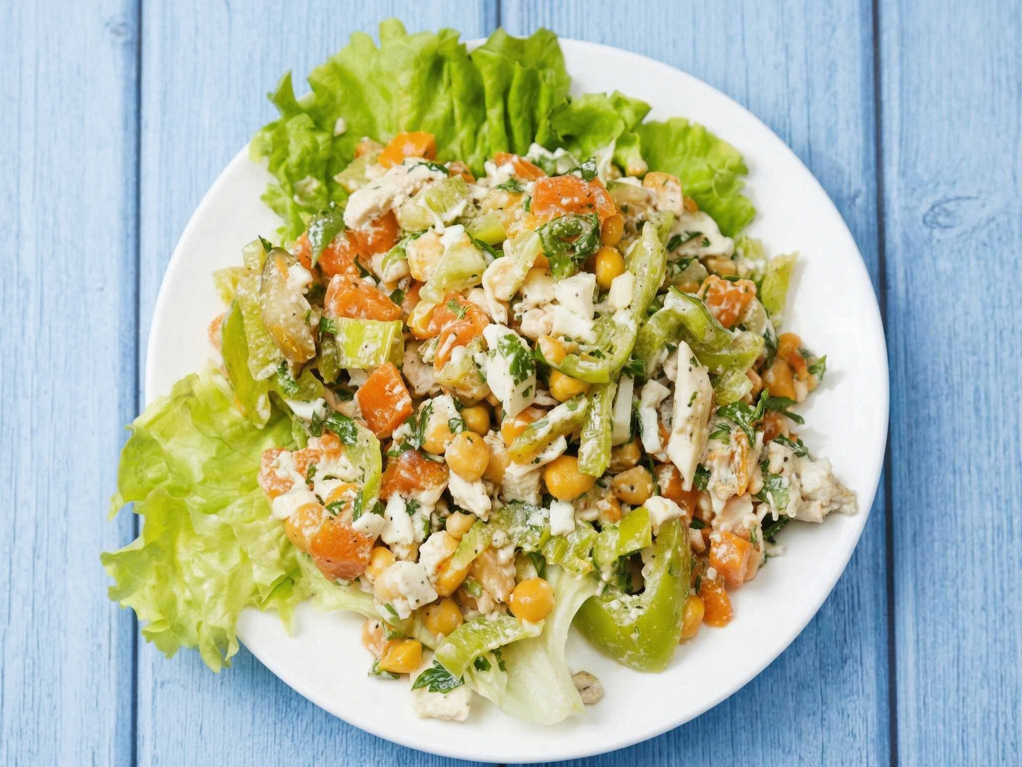 Crisp greens with tender turkey, fresh vegetables, and dressing.