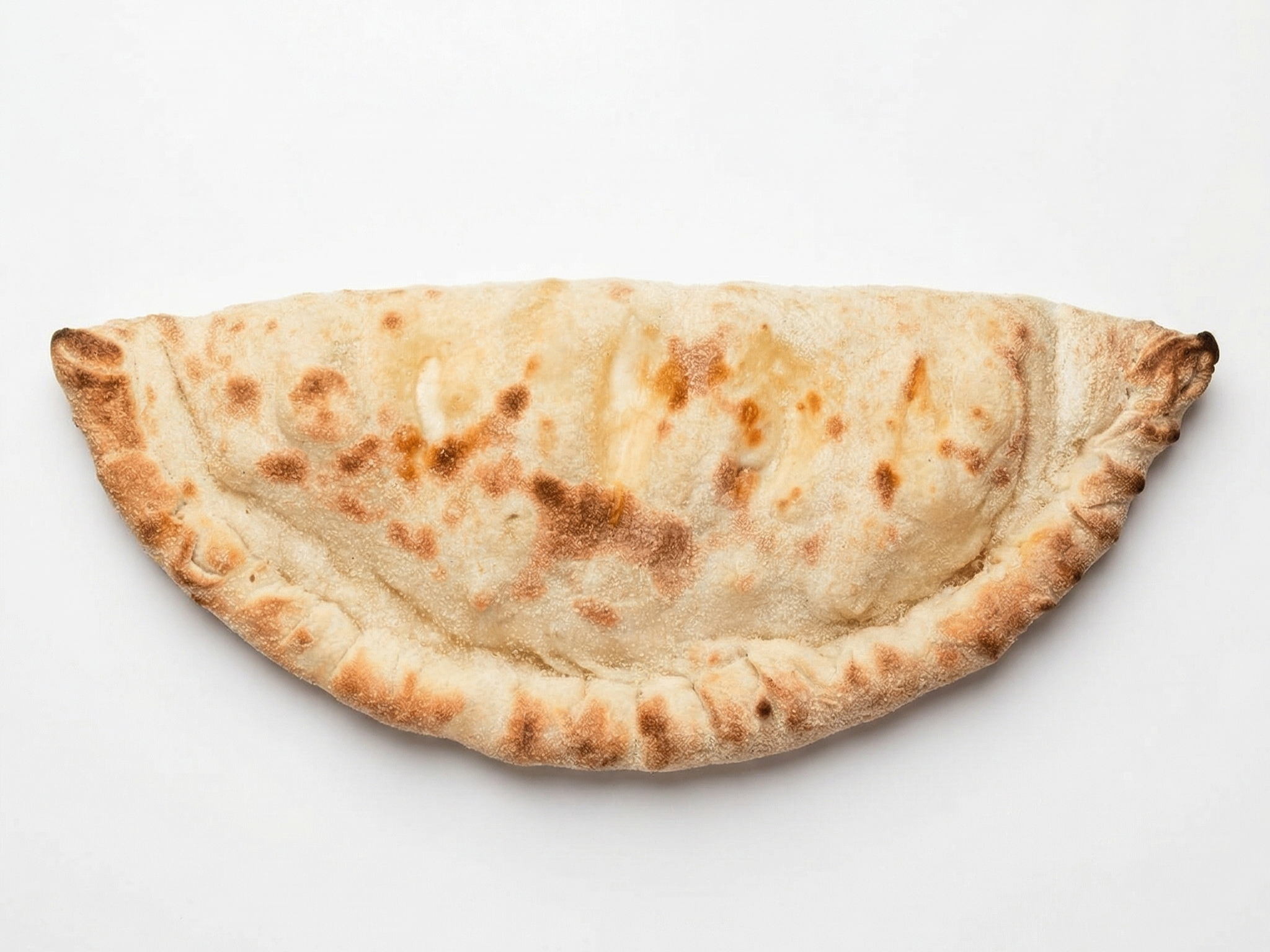 A handcrafted calzone featuring a rich blend of cheeses, baked to a golden crisp.