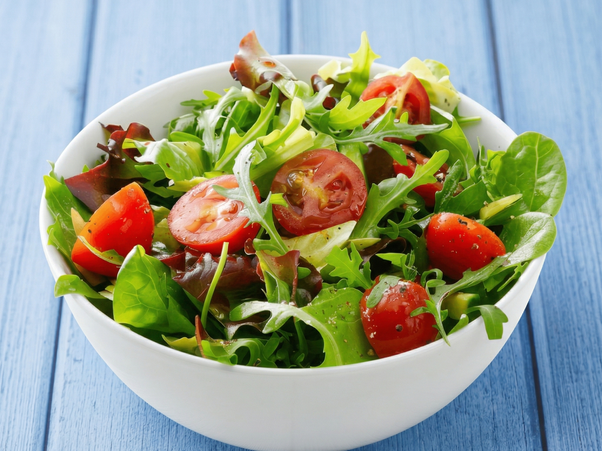 Fresh mixed greens with tomatoes, cucumbers, and your choice of dressing.