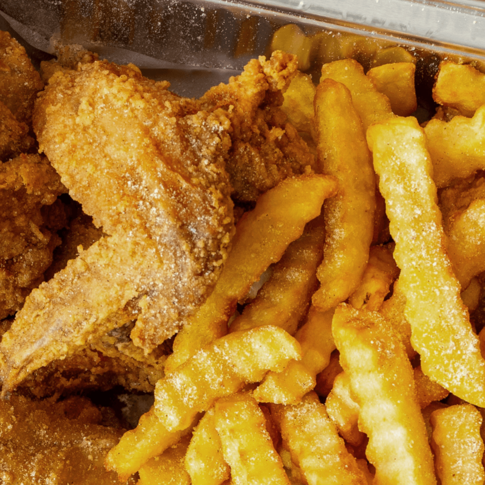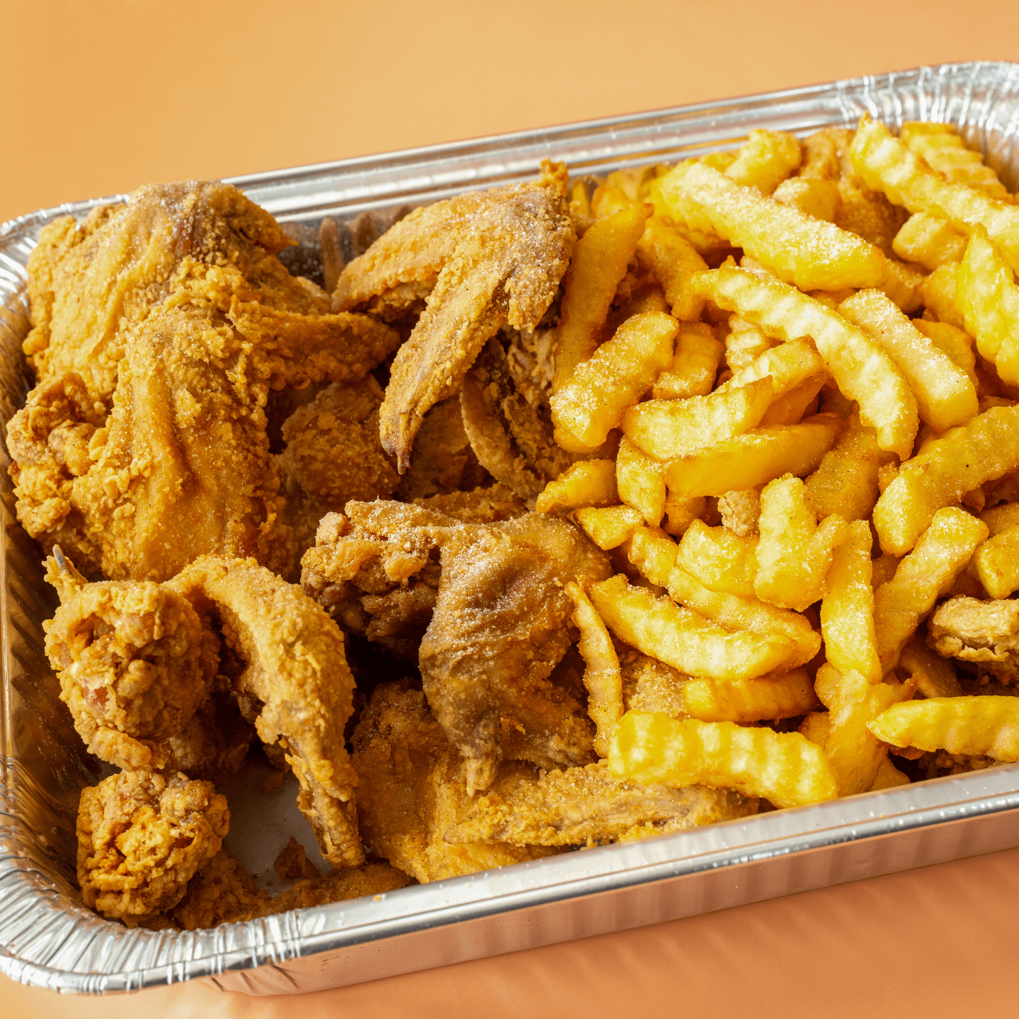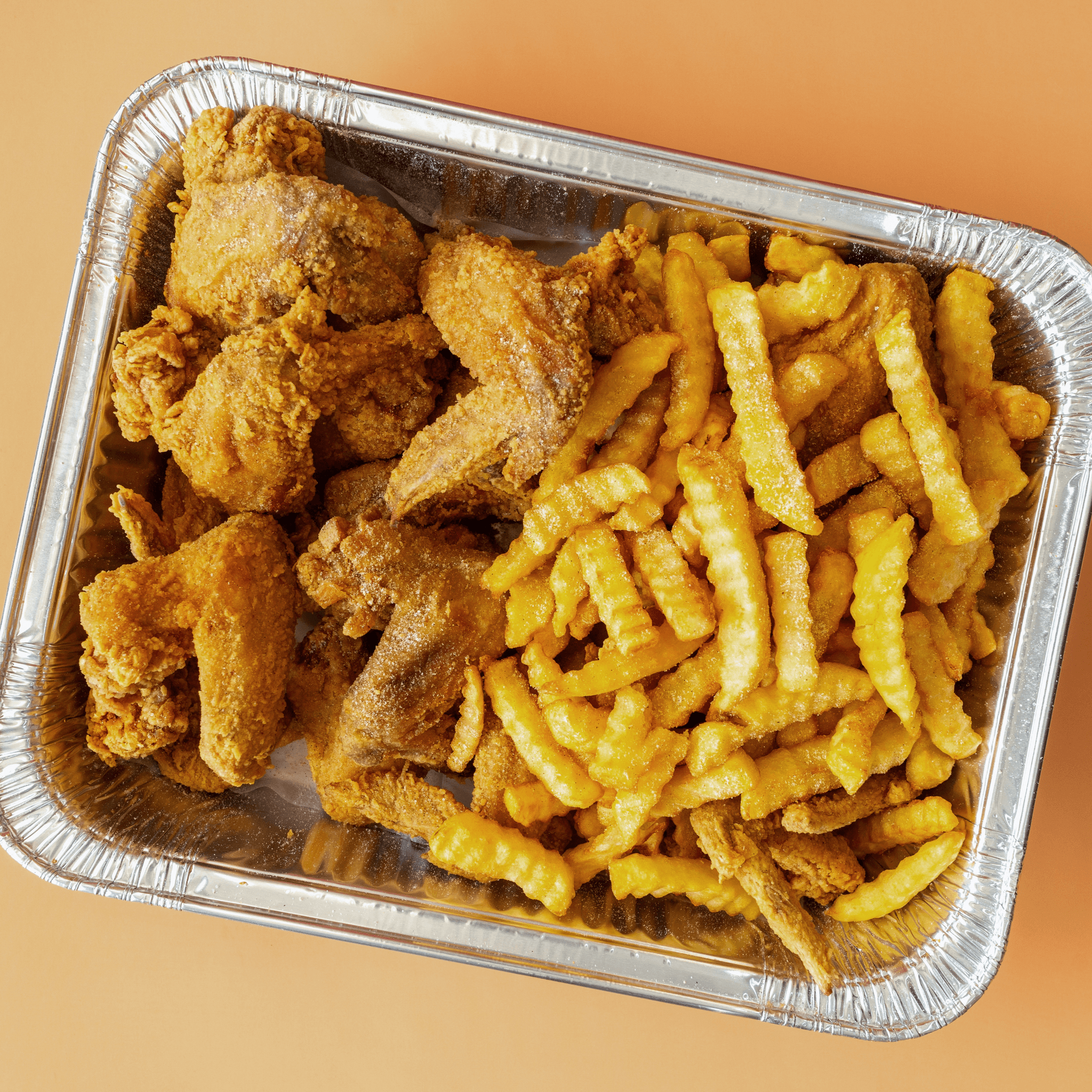 Wings, legs, thigh. Served with fries and coleslaw.